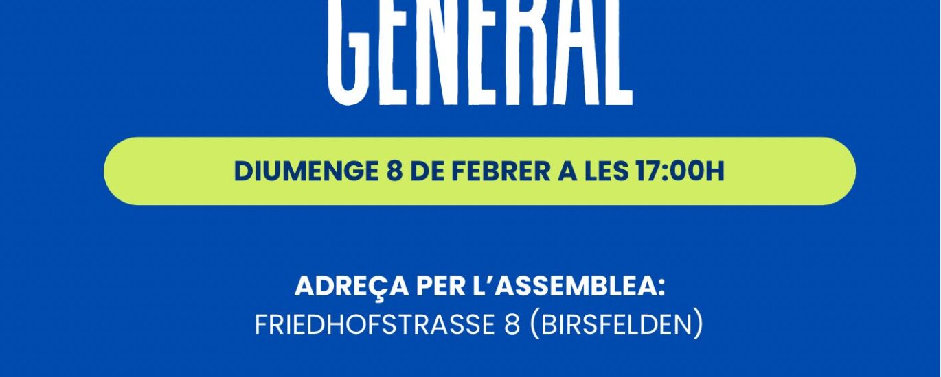 Us esperem amb il·lusió al Centre Català de Basilea (Friedhofstrasse 8, Birsfelden CH-4127) per celebrar la nostra Assemblea General del 2026.