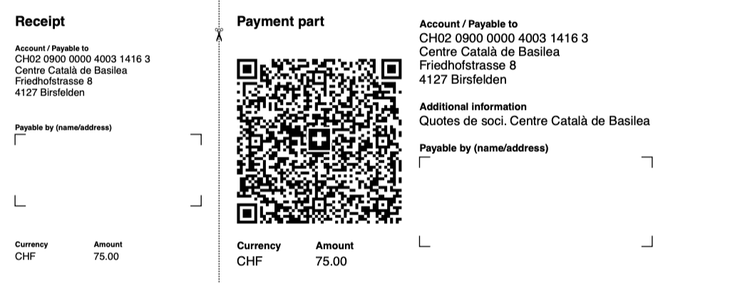 Si utilitzeu el QR-Bill, recordeu que cal modificar manualment l’import segons la quota que us
